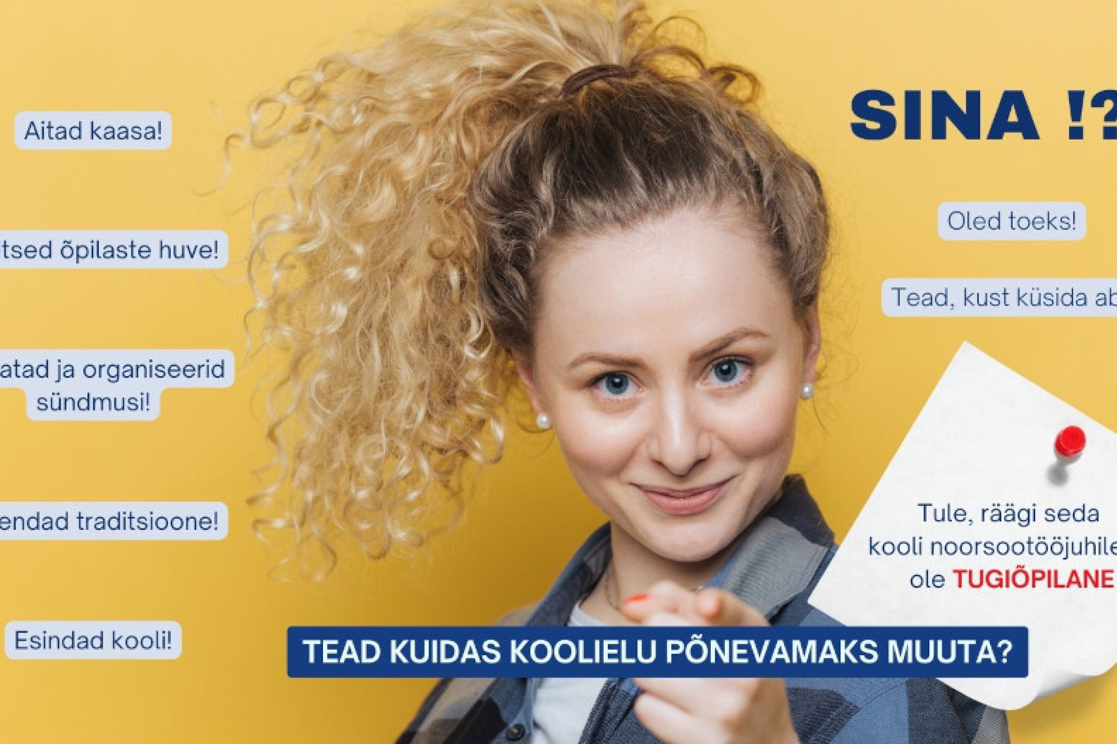 Meie koolis ei ole keegi üksi! Kui tugiõpilasel ei ole vastuseid sinu küsimustele, siis ta teab, kust neid leida ja ei jäta sind hätta.
