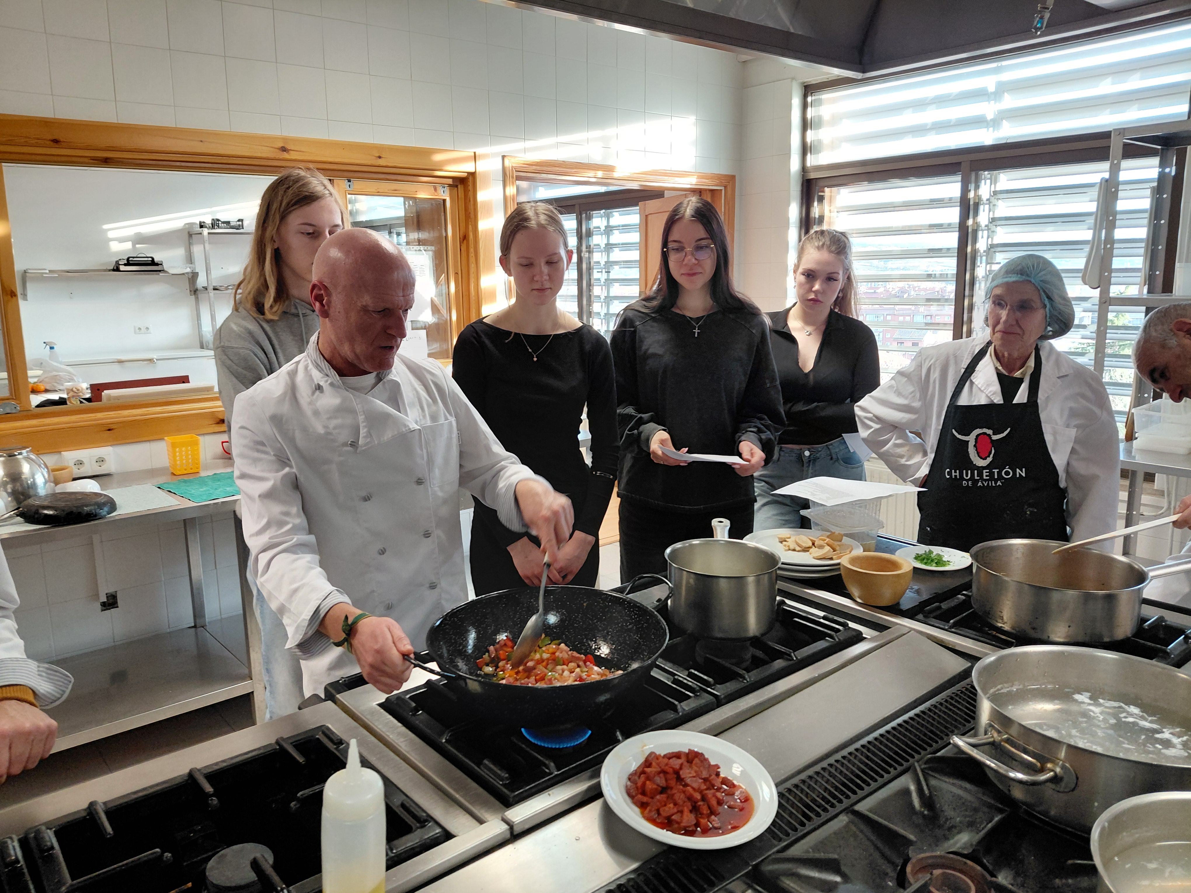 Meie külastatud koolis Hispaanias saime näha, kuidas gümnaasiumihariduse kõrval pakutakse mitmekülgset kutseõpet, mis muudab sealse õppekorralduse sarnaseks meie kutsekoolidele. Külastasime õppetöökodasid, kus valmistati mööblit ja õpiti automehaanikat. Lisaks töökodadele pakkus praktilisi kogemusi ka kokandustund, kus kultuuriline kümblus jätkus Hispaania köögi alustalasid tundma õppides.